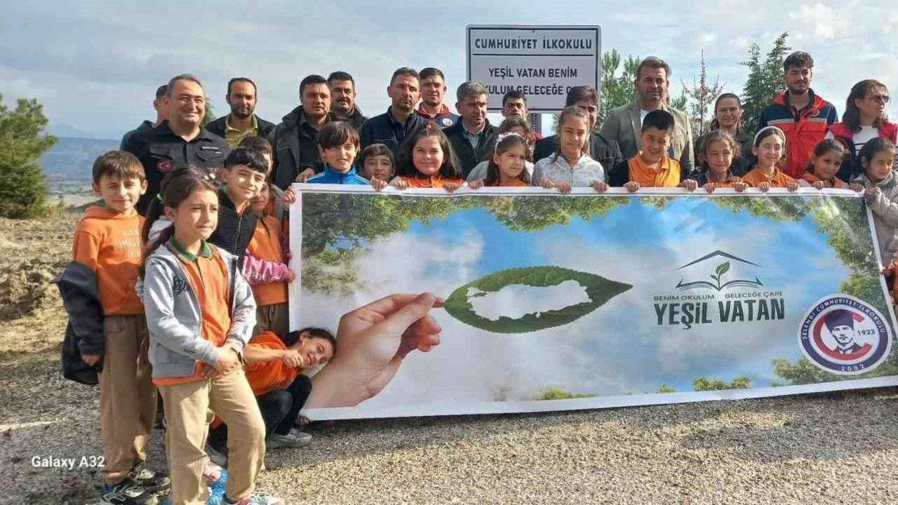 Selendi Cumhuriyet İlkokulu öğrencileri, çevre bilincini artırmak ve doğaya olan sevgilerini göstermek amacıyla düzenlenen "Yeşil Vatan" etkinliğinde bir araya geldi.
