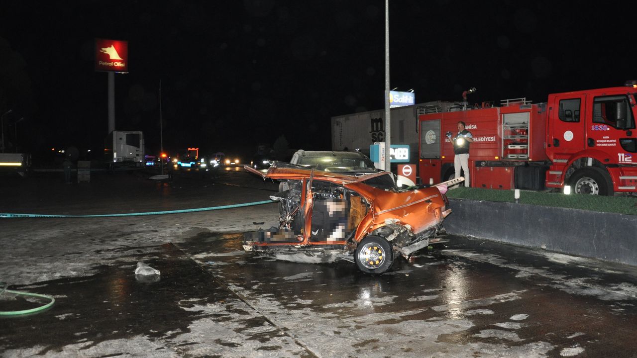 Manisa’nın Salihli ilçesinde, Ankara-İzmir D300 Karayolu üzerindeki Caferbey Kavşağı yakınlarında meydana gelen kazada otomobil, kontrolden çıkarak karşı şeride geçti. Karşı yönden gelen pikapla kafa kafaya çarpışan araç, can pazarına neden oldu.