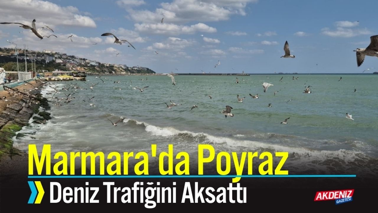 Zaman zaman hızı saatte 40 kilometreye ulaşan poyraz nedeniyle yerli ve yabancı bandıralı 8 şilep ile tanker, Tekirdağ açıklarında demirleyerek beklemek zorunda kaldı. Kıyıda etkili olan dalgalar, sahile yosun ve çeşitli atıkları sürüklerken, çok sayıda martı da dalgalar arasında kıyıda balık avlama yarışına girdi.