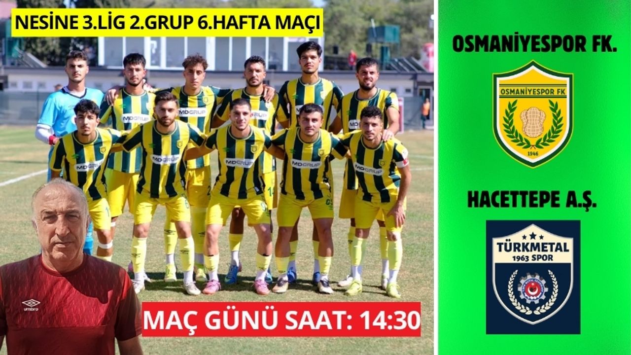 TFF 3. Lig 2. Grup 6. hafta mücadelesinde MDGrup Osmaniyespor, sahasında Hacettepe AŞ. Türk Metal 1963 Spor Kulübü’nü konuk edecek.