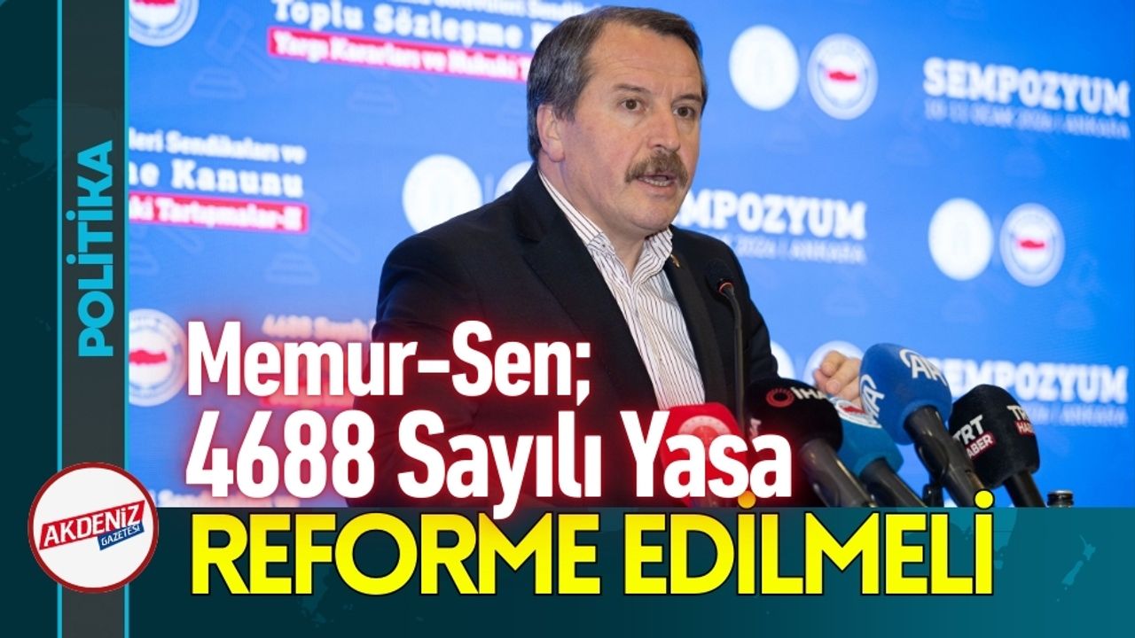 Memur-Sen Genel Başkanı Ali Yalçın, 4688 sayılı yasanın mevcut haliyle kamu görevlileri sendikacılığının yükünü taşıyamadığını belirterek, “Uluslararası hukuku dikkate alarak yeniden gözden geçirilmesi ve reforme edilmesi şarttır” dedi.