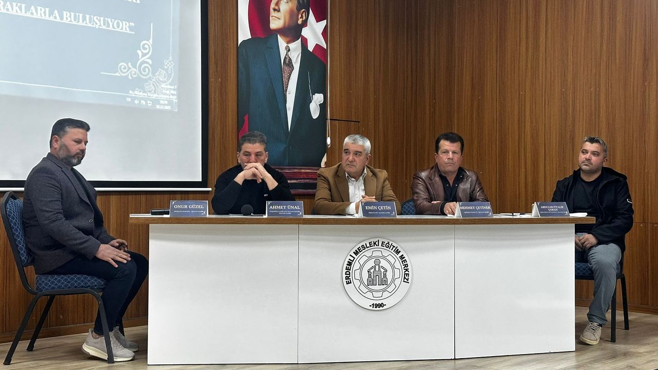Erdemli Mesleki Eğitim Merkezi Müdürlüğü, öğrencilerin profesyonel hayata daha donanımlı hazırlanmaları amacıyla anlamlı bir projeye imza attı. Merkezin toplantı salonunda gerçekleştirilen Kariyer Günleri programı, teorik eğitimin ötesine geçerek pratik saha tecrübesini sınıfa taşıdı. Farklı iş kollarında yarım asra yakın tecrübesi olan ustalar, gençlerin mesleki heyecanına ortak oldu.