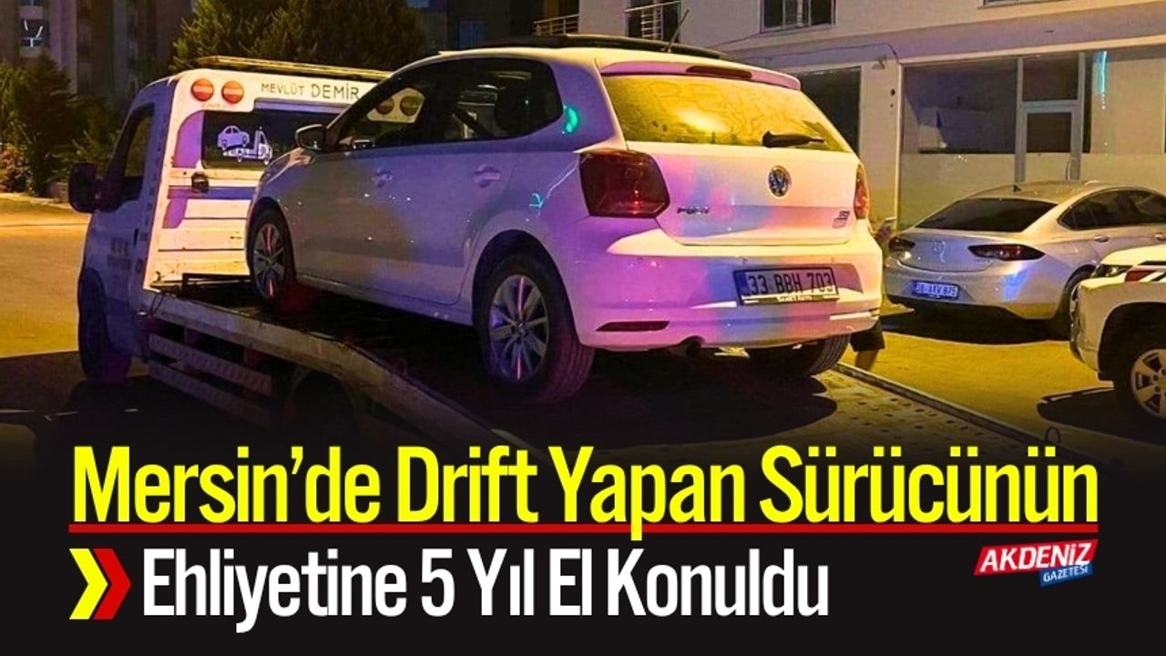 Mersin'in Erdemli ilçesinde otomobiliyle drift yaparak hem çevredeki vatandaşları hem de trafik güvenliğini tehlikeye atan sürücünün ehliyetine 5 yıl 2 ay süreyle el konuldu.