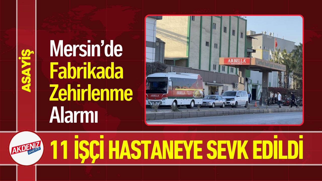 Mersin’in Akdeniz ilçesinde faaliyet gösteren bir makarna fabrikasında 11 işçi, zirai ilaç zehirlenmesi şüphesiyle hastaneye kaldırıldı. Olay, Kazanlı Mahallesi'nde bulunan Arbel Makarna Fabrikası’nda meydana geldi.