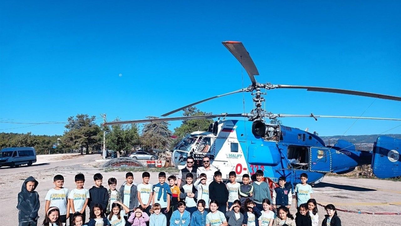Silifke Gazipaşa İlkokulu öğrencileri, bu kapsamda Çamdüzü Orman Deposu’nda konuşlanan yangın söndürme helikopterini ziyaret etti.