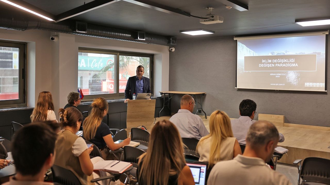 Eğitim süresince Niran Armutcu tarafından katılımcılara kritik başlıklar altında bilgiler aktarılıyor. Programda ele alınan konular arasında 'Sürdürülebilirliğe İlişkin Düzenlemeler ve Türkiye’deki Sektörlere Etkileri', 'Emisyon Kontrolü ve Yönetimi' ile 'Kurumsal Sürdürülebilirlik Raporlamasına Yönelik Çevre ve Standartlar' bulunuyor.