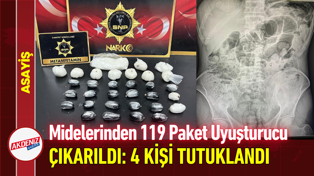 Şüpheli şahısların midelerinden 119 paket halinde 1 kilo 597 gram uyuşturucu madde çıkartıldı. Zanlılar, sevk edildikleri adli makamlarca tutuklanarak cezaevine sevk edildi.