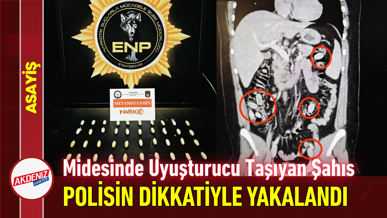 Eskişehir'e 44 kapsül uyuşturucu maddeyi midesinde sokmaya çalışan yabancı uyruklu şahıs polisin dikkati sayesinde yakayı ele verdi. Ameliyatla midesinden uyuşturucu maddeler çıkarılan şahıs çıkarıldığı mahkemece tutuklandı.