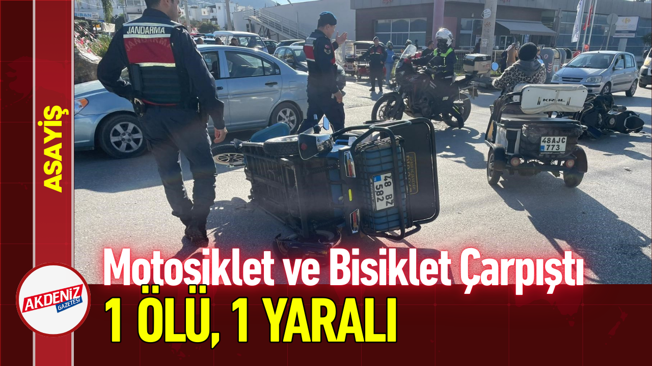 Muğla'nın Bodrum ilçesinde motosikletle 3 tekerli bisikletin çarpıştığı trafik kazasında 1 kişi hayatını kaybetti, 1 kişi yaralandı.
