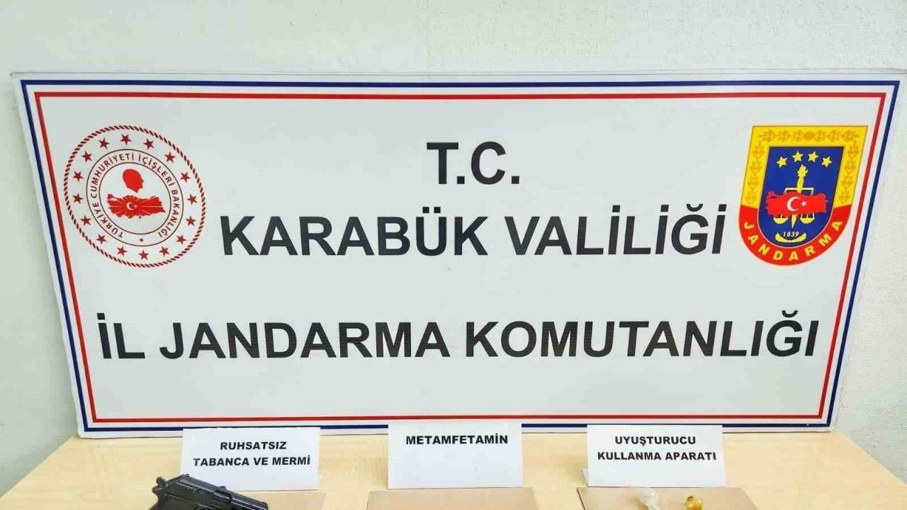 Safranbolu Cumhuriyet Başsavcılığı koordinesinde, İl Jandarma Komutanlığı ekiplerince yürütülen operasyonda, bir şüphelinin aracında, üzerinde ve iş yerinde arama yapıldı. Aramalarda 18,62 gram metamfetamin, 2 uyuşturucu kullanma aparatı, 1 tabanca, 9 el yapımı patlayıcı madde ve 6 fişek ele geçirildi.