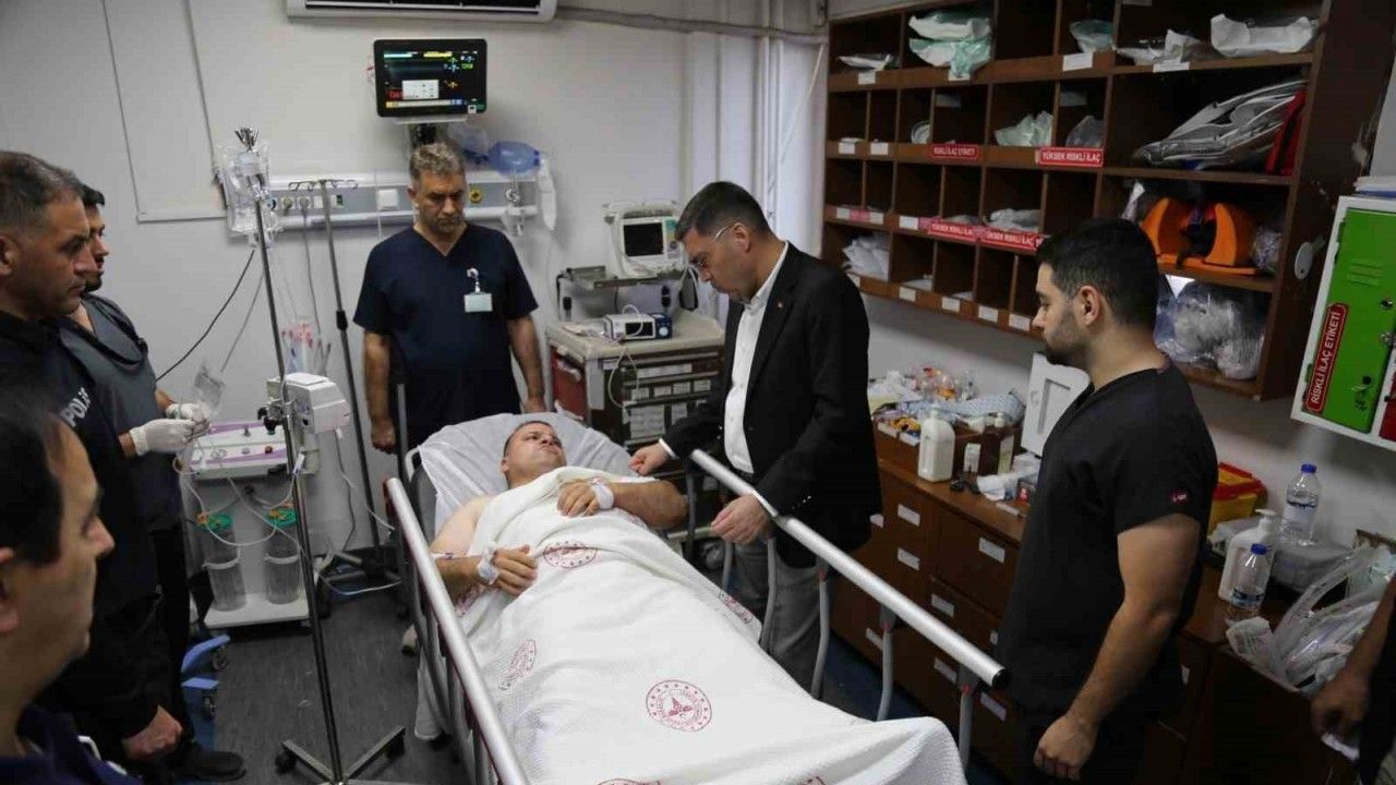 İl Emniyet Müdürü Atilla Aksoy, tedavisi süren polis memurunu hastanede ziyaret etti. Şanlıurfa İl Emniyet Müdürlüğünün sosyal medya hesabından yapılan açıklamada, "25 Ekim 2025 günü görevi başında yaralanan polisimizin sağlık durumunu yakından takip etmek ve yerinde incelemelerde bulunmak üzere İl Emniyet Müdürümüz Sayın Atilla Aksoy, mesai arkadaşlarımızı ziyaret ederek doktorlardan bilgi aldılar. Tedavi gören meslektaşımıza acil şifalar dileriz" ifadelerine yer verildi.