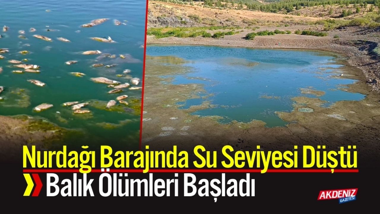 Gaziantep'in Nurdağı ilçesine bağlı Sayburun Mahallesi'nde bulunan sulama barajında su seviyesinin düşmesi balık ölümlerine neden oldu.