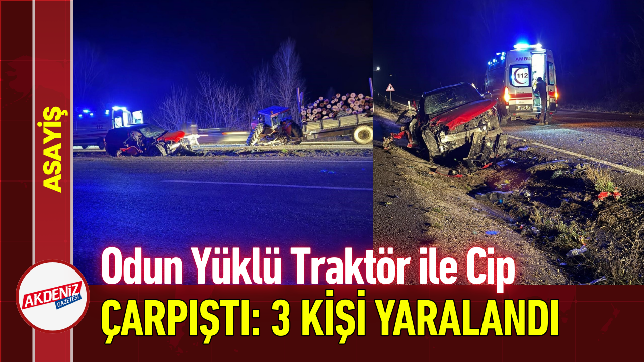 Kaza, Taşköprü ilçesi Kastamonu-Sinop karayolu Alama köyü mevkiinde meydana geldi. Edinilen bilgiye göre, Savaş K. idaresindeki 37 DR 750 plakalı Jeep marka cip ile Ali Ç. yönetimindeki 37 ABF 802 plakalı römorkunda odun yüklü olan traktör çarpıştı. Kazada sürücüler ile traktörde yolcu olarak bulunan Kenan S. yaralandı. Yaralılar, olay yerine çağrılan sağlık ekiplerince Taşköprü Devlet Hastanesine kaldırıldı.