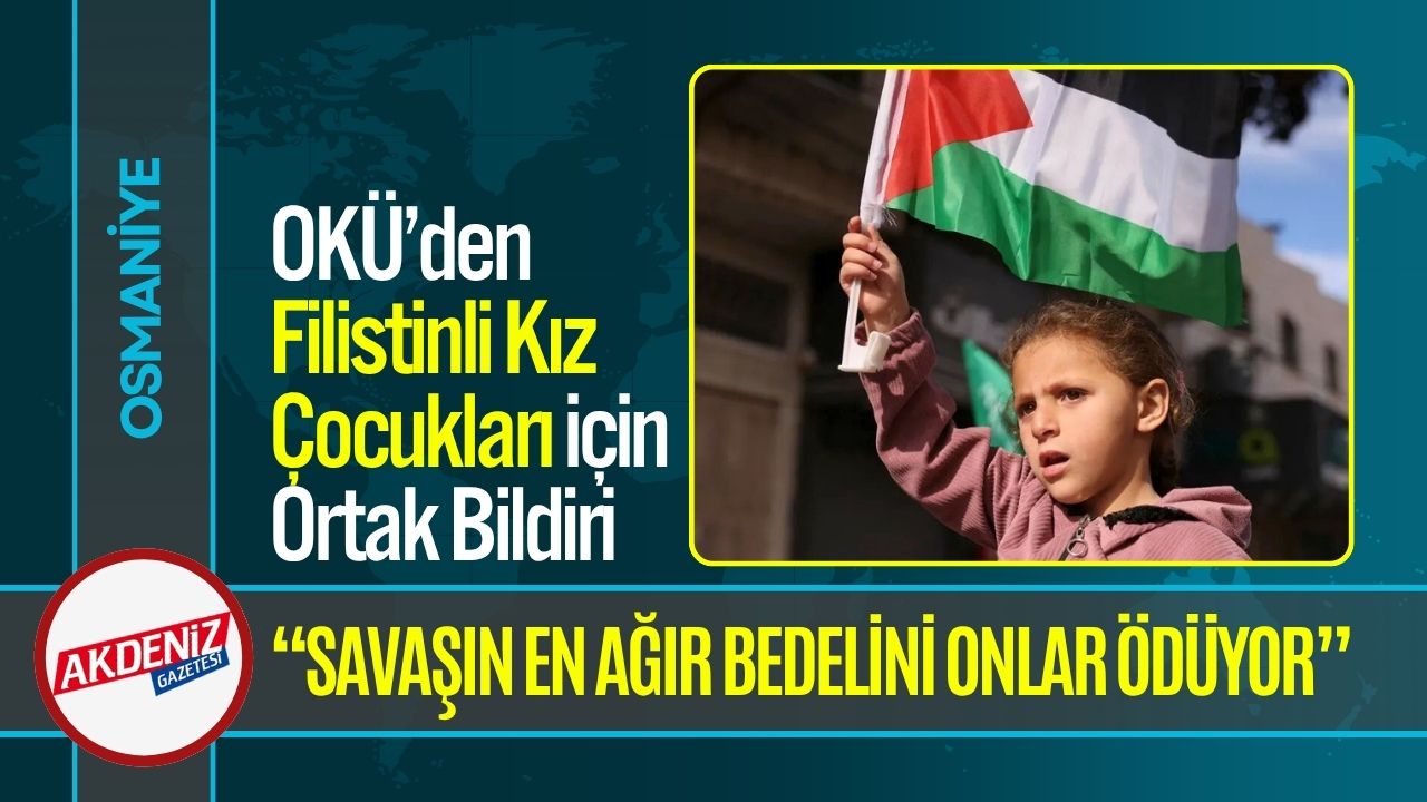 Osmaniye Korkut Ata Üniversitesi Kadın Platformu, Dünya Kız Çocukları Günü’nde 50 üniversiteyle birlikte Filistinli kız çocuklarının yaşadığı hak ihlallerine dikkat çekti. Ortak bildiride, savaşın en çok kız çocuklarını etkilediği vurgulanarak uluslararası topluma vicdani duruş çağrısı yapıldı.