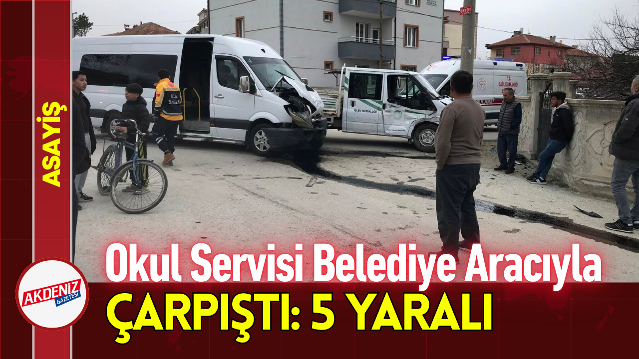 Konya'nın Ereğli ilçesinde okul servisinin Ereğli Belediyesine ait hizmet aracı ile çarpışması sonucu meydana gelen kazada 5 kişi yaralandı.