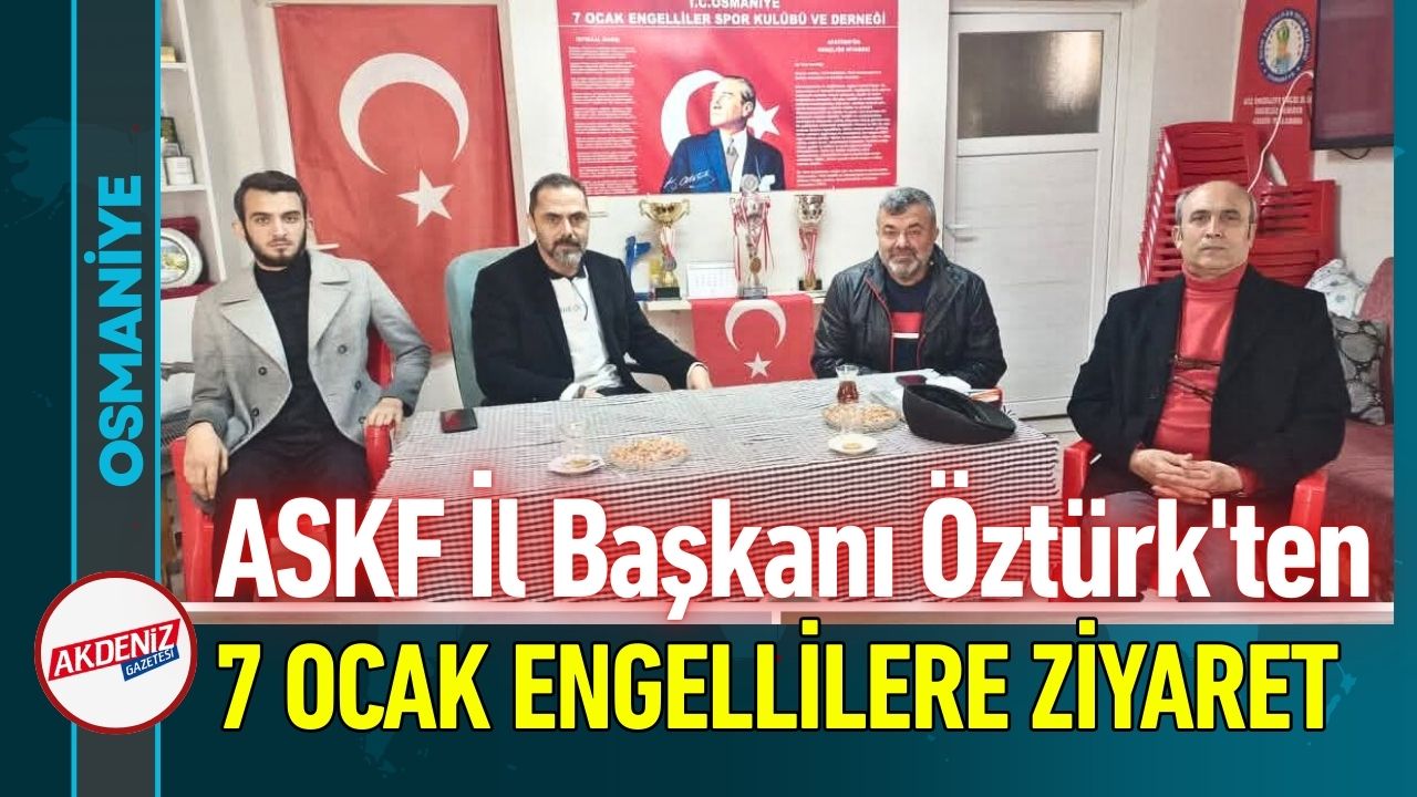 Osmaniye Amatör Spor Kulüpleri Federasyonu (ASKF) Başkanı Levent Öztürk, Yedi Ocak Engelli Spor Derneği Başkanı Derviş Aslan’ı makamında ziyaret etti.