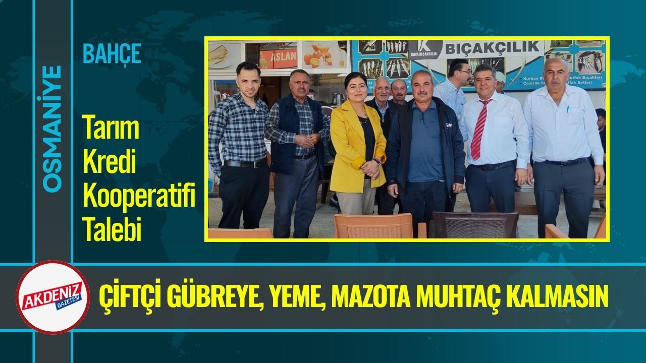 Toplantıya katılan Osmaniye Tarım Kredi Kooperatifi Müdürü Yılmaz Ayaz ise Bahçe’de Tarım Kredi Kooperatifi açılması yönündeki talebi bölge müdürlüğüne ileteceğini söyledi.