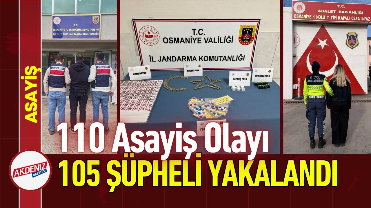 Jandarma Komutanlığı’ndan yapılan açıklamaya göre, belirtilen tarihler arasında sorumluluk bölgesinde toplam 110 asayiş olayı meydana geldi.