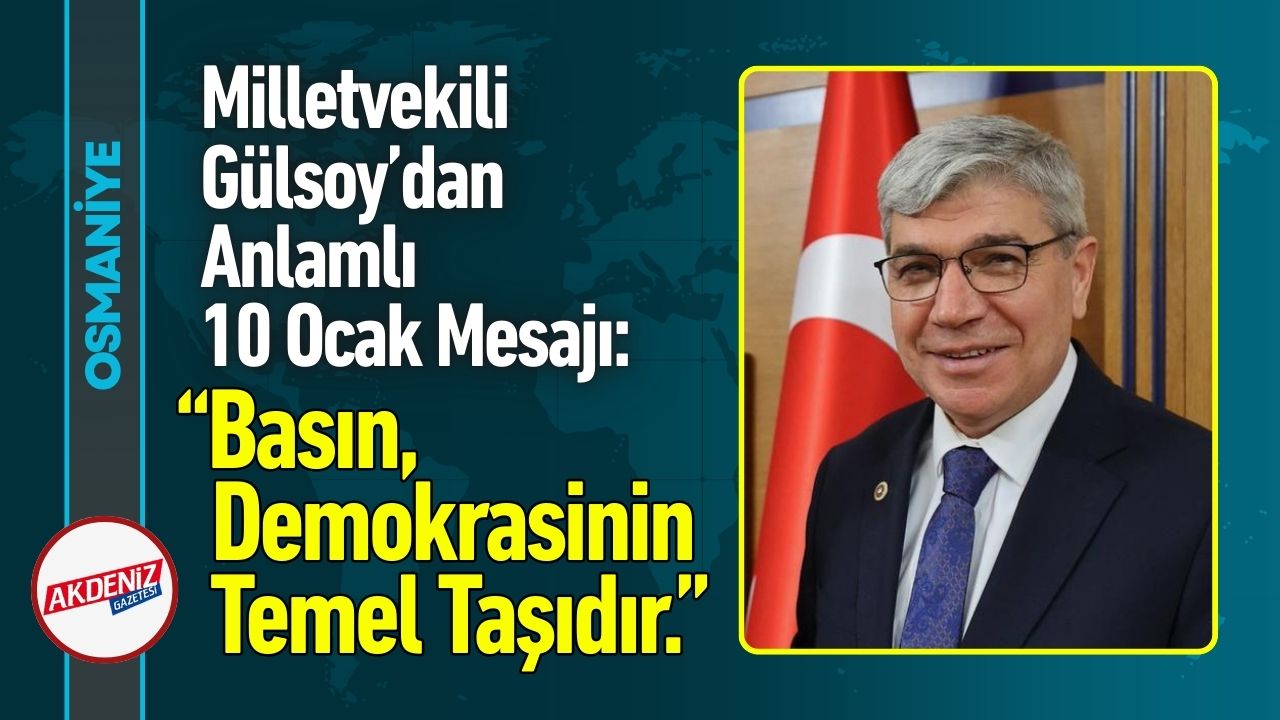 AK Parti Osmaniye Milletvekili, TBMM Plan ve Bütçe Komisyonu Üyesi ve AK Parti Genel Merkez Ekonomi İşleri Başkan Yardımcısı Seydi Gülsoy, 10 Ocak Çalışan Gazeteciler Günü dolayısıyla bir mesaj yayımladı.