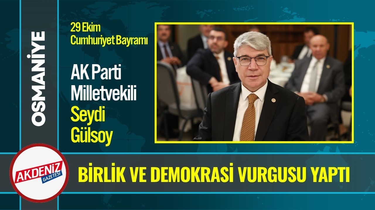 Osmaniye Ak Parti Osmaniye Milletvekili ve Genel Merkez Ekonomi İşleri Başkan Yardımcısı Seydi Gülsoy, 29 Ekim Cumhuriyet Bayramı’nın 102. yıl dönümü dolayısıyla yayımladığı kutlama mesajıyla, Cumhuriyet’in Türk milleti için taşıdığı tarihi ve manevi anlamı vurguladı.