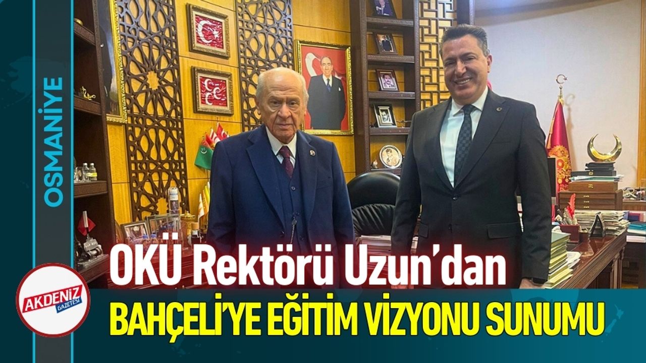Osmaniye Korkut Ata Üniversitesi (OKÜ) Rektörü Prof. Dr. Turgay Uzun, Milliyetçi Hareket Partisi Genel Başkanı ve Osmaniye Milletvekili Dr. Devlet Bahçeli’yi makamında ziyaret etti. Ziyaret, karşılıklı iyi dileklerin iletildiği samimi bir atmosferde gerçekleşti.