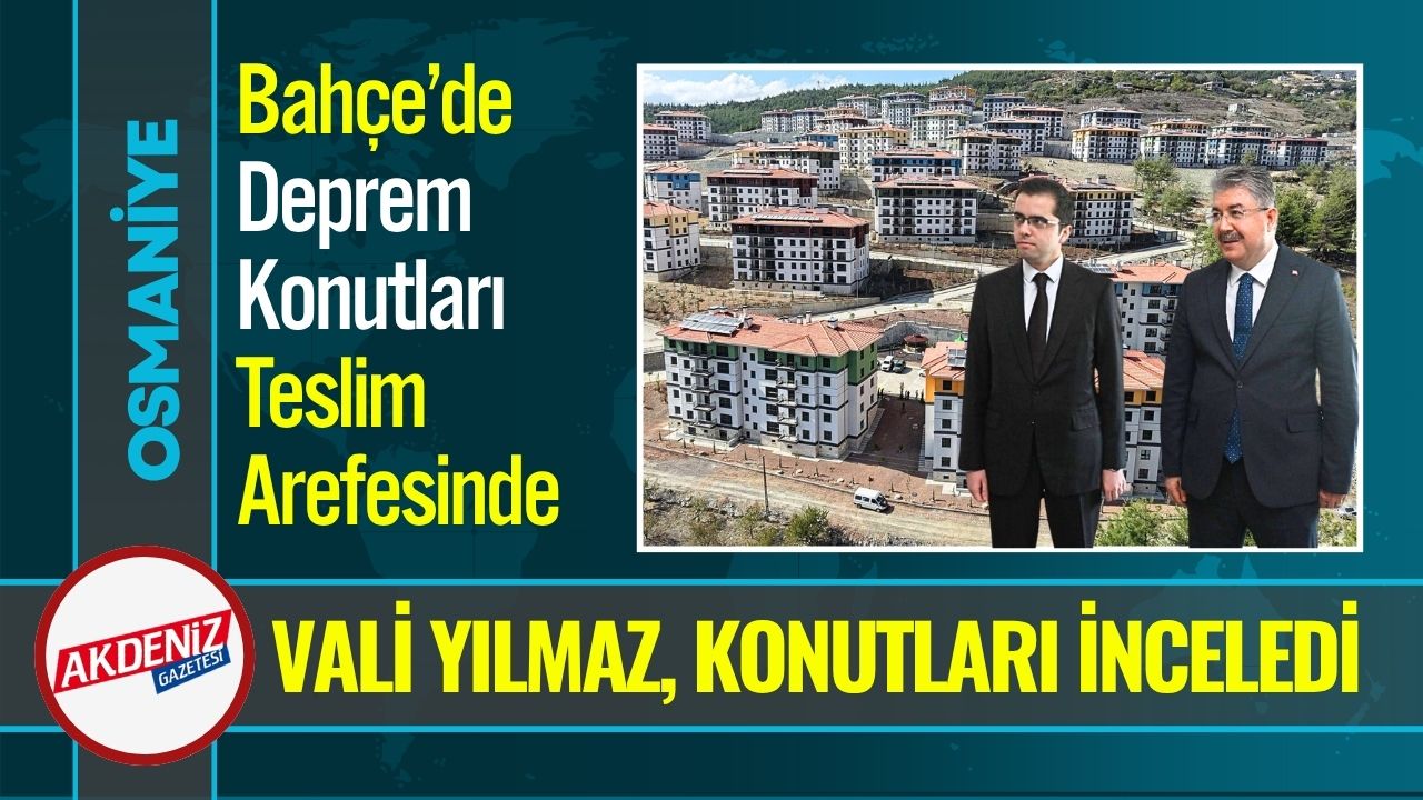 Osmaniye Valisi Dr. Erdinç Yılmaz, Bahçe Kaymakamı Yunus Emre Şahin ve Bahçe Belediye Başkanı Zeynel Mete Kadıoğlu ile birlikte, Çamlıca Mahallesi 2. Etap deprem konutlarında incelemelerde bulundu.