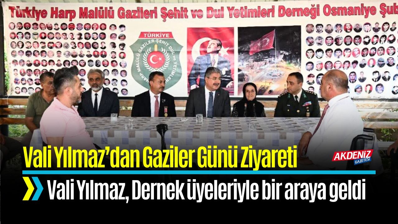Osmaniye Valisi Dr. Erdinç Yılmaz, 19 Eylül Gaziler Günü dolayısıyla Türkiye Harp Malulü Gaziler, Şehit Dul ve Yetimleri Derneği Osmaniye Şubesini ziyaret etti.