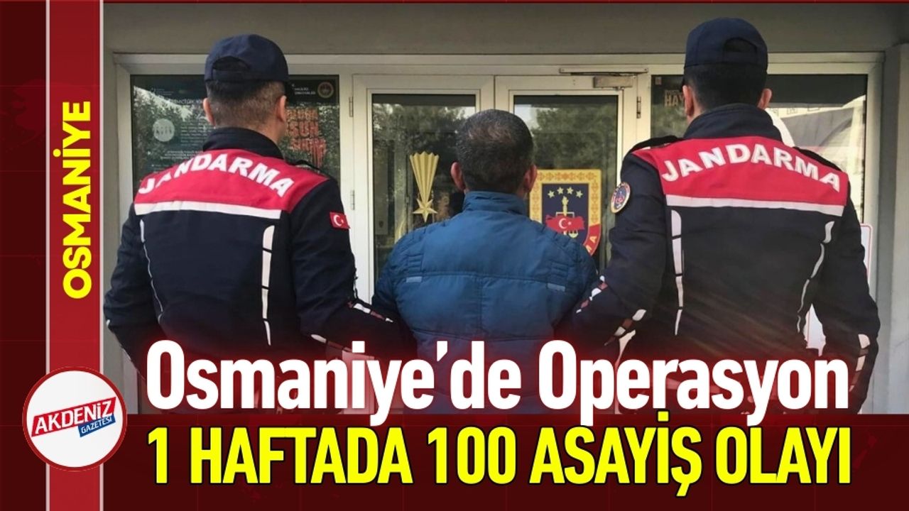 Osmaniye İl Jandarma Komutanlığı sorumluluk bölgesinde, 05–11 Ocak 2026 tarihleri arasında toplam 100 asayiş olayı meydana geldi. Olaylara ilişkin yürütülen çalışmalarda 88 şüpheli yakalanarak adli makamlara sevk edildi.