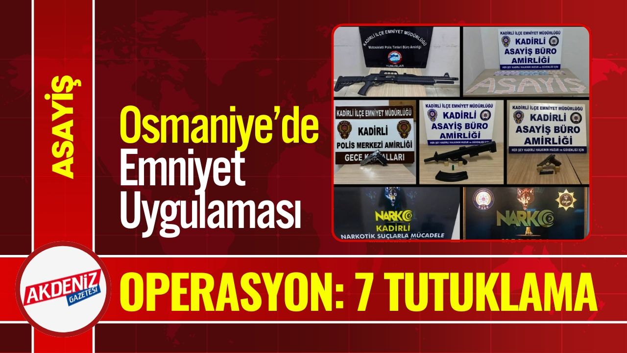 Osmaniye’nin Kadirli İlçe Emniyet Müdürlüğü ekipleri, ilçe genelinde suç ve suç unsurlarına yönelik yürüttüğü operasyonlarda son bir hafta içerisinde önemli sonuçlar elde etti. Asayiş ve Narkotik Şube ekiplerinin koordineli çalışmaları sonucunda toplam 7 kişi tutuklandı.