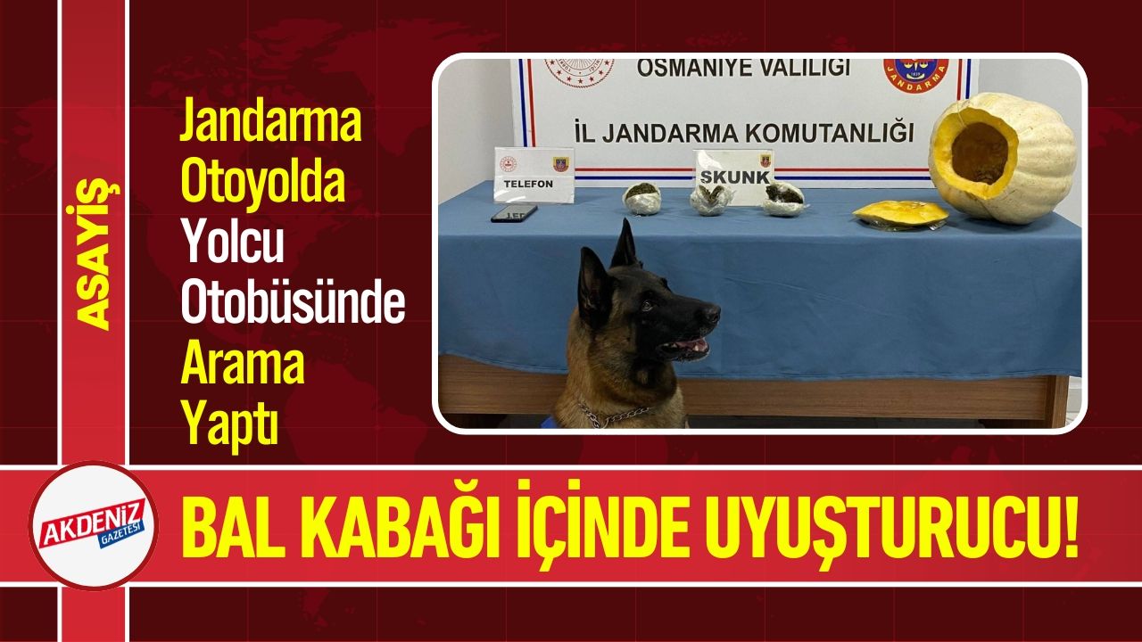 Bahçe ilçesi sınırlarında gerçekleştirilen yol kontrolünde, şehirler arası yolcu otobüsünün bagaj kısmında bal kabağının içine gizlenmiş 706 gram skunk maddesi ele geçirildi.