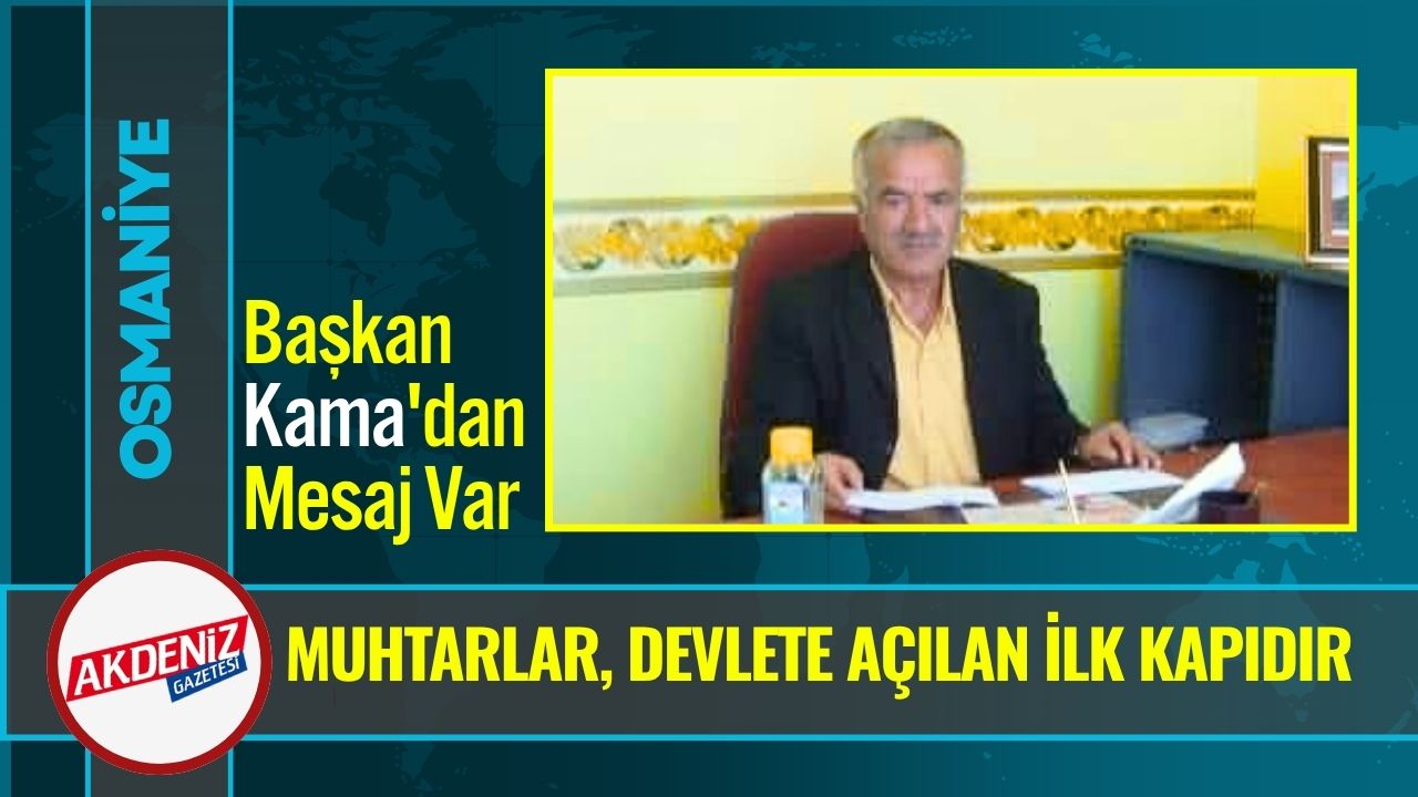 Osmaniye Merkez Köy Muhtarları Derneği Başkanı ve Şekerdere Köyü Muhtarı Ali Kama, 19 Ekim Muhtarlar Günü dolayısıyla yayımladığı mesajda tüm muhtarların gününü en içten dileklerle kutladı.