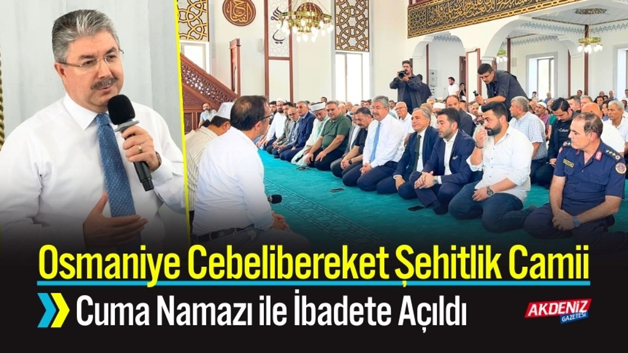 Osmaniye’nin Yaverpaşa Mahallesi Asri Mezarlık karşısında hayırseverlerin destekleriyle inşa edilen Cebelibereket Şehitlik Camii, kılınan ilk cuma namazıyla ibadete açıldı. Açılışta ilk vaazı Osmaniye İl Müftüsü Ali Çakmak verdi.
