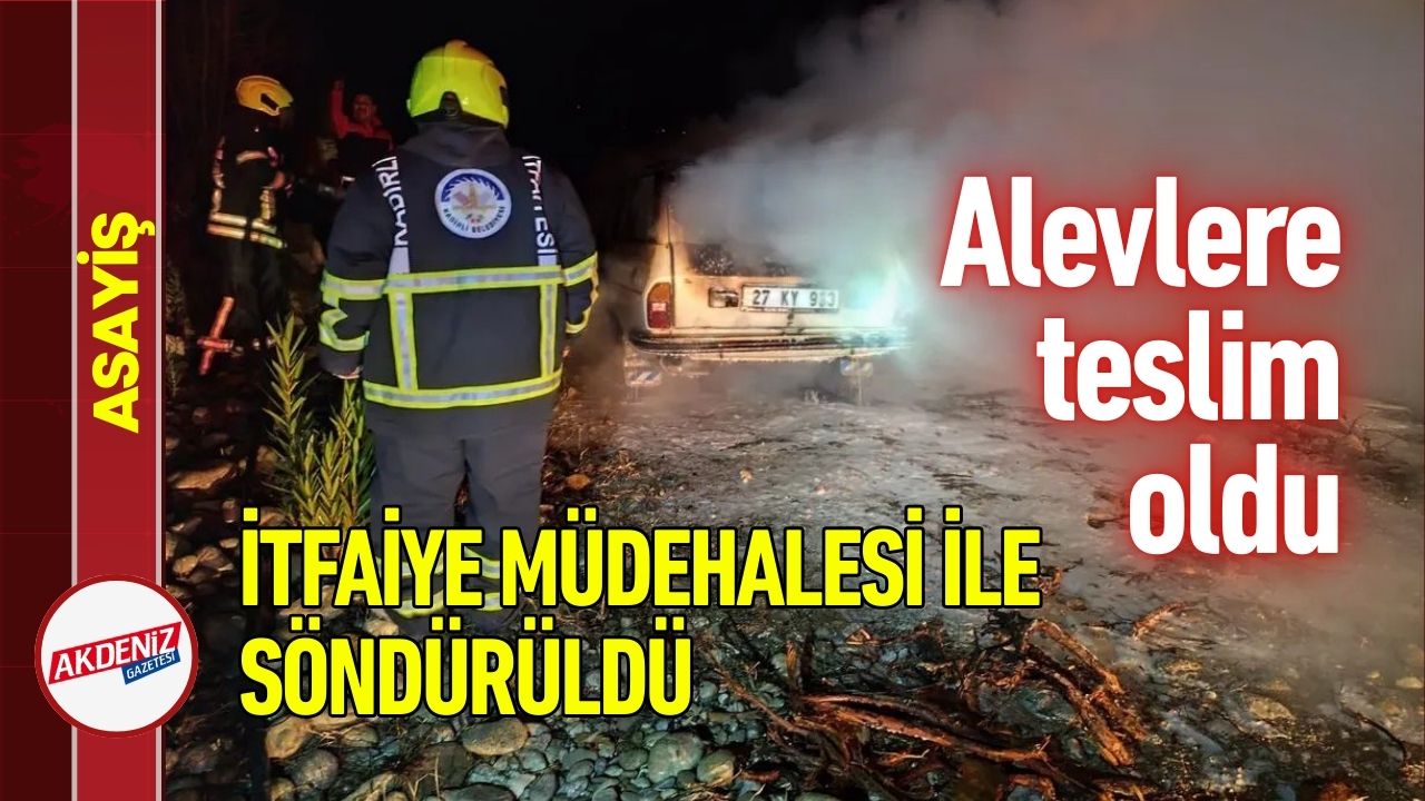 Henüz bilinmeyen bir nedenle alev alan araç, kısa sürede yanmaya başladı.