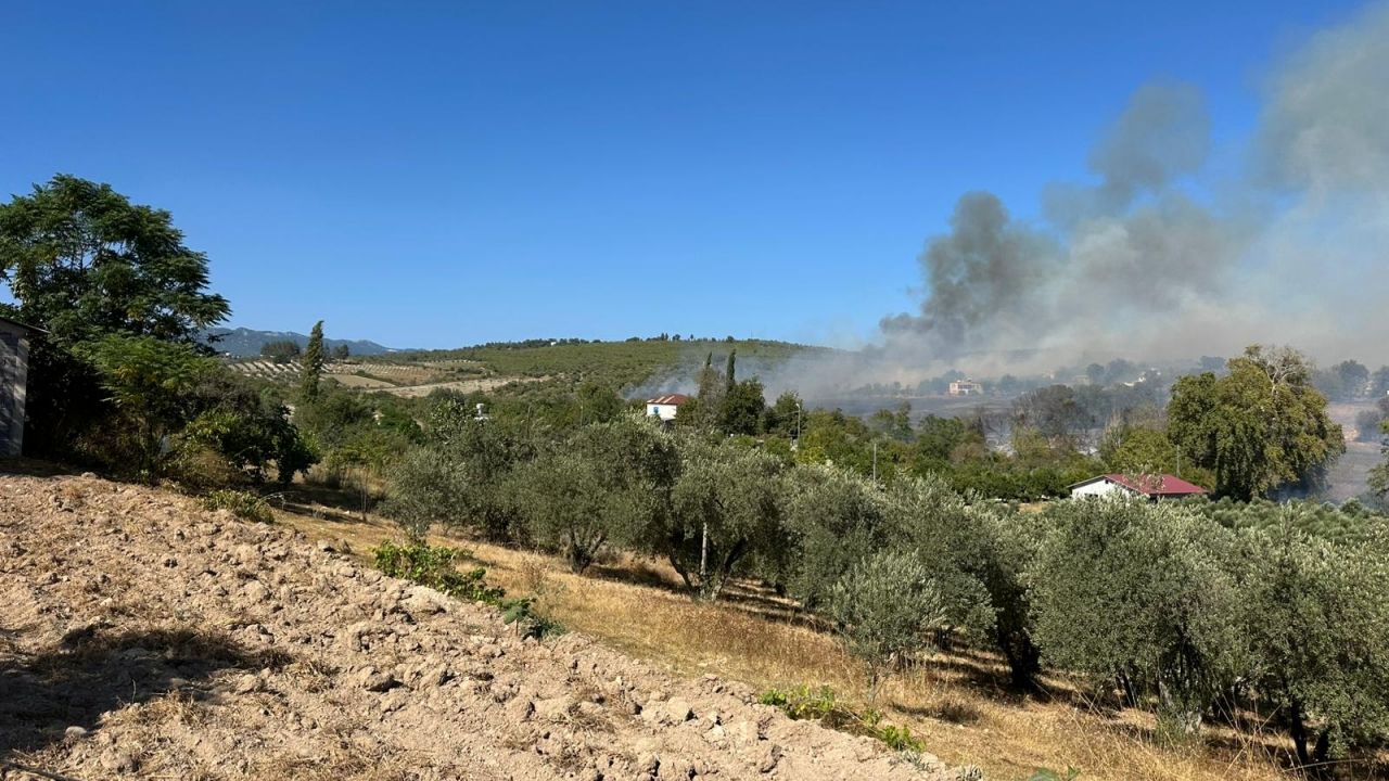 Evciler Mahallesi yakınlarında henüz belirlenemeyen bir nedenle başlayan yangın, kısa sürede büyüyerek zeytin ağaçlarının bulunduğu alana yayıldı.