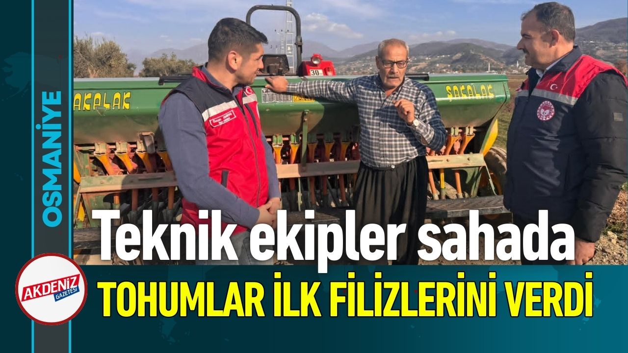 Osmaniye’nin Düziçi ilçesinde toprakla buluşan buğday, arpa ve yonca tohumları ilk filizlerini verdi.