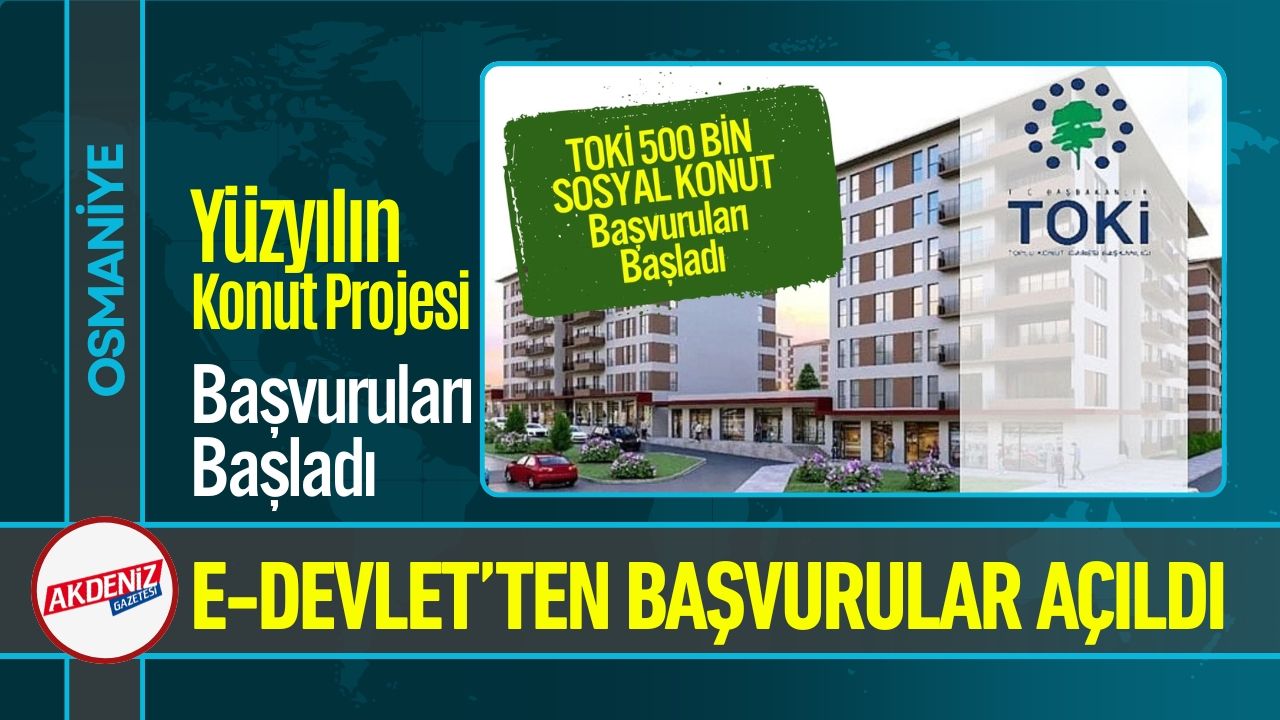 Toplu Konut İdaresi (TOKİ) tarafından Türkiye genelinde başlatılan “Yüzyılın Konut Projesi” kapsamında Osmaniye’de de dar gelirli vatandaşlara uygun fiyatlarla konut sahibi olma fırsatı sunuluyor. Projeyle birlikte 81 ilde 500 bin sosyal konut inşa edilecek. Başvurular, bugün itibarıyla e-Devlet üzerinden, yetkili banka şubelerinden ise yarından itibaren yapılabilecek.