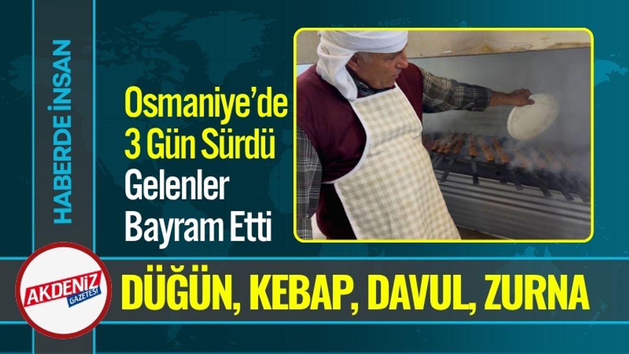 Osmaniye’nin Bahçe ilçesinde Ayhan Akdeniz, oğlu Mert Akdeniz’in düğününü unutulmaz bir şölene dönüştürdü. Üç gün süren kutlamalarda konuklara mangalda pişen kebaplar ikram edildi. Mahalleye yayılan kebap kokusu, davul zurnanın sesiyle birleşerek adeta bayram havası oluşturdu.