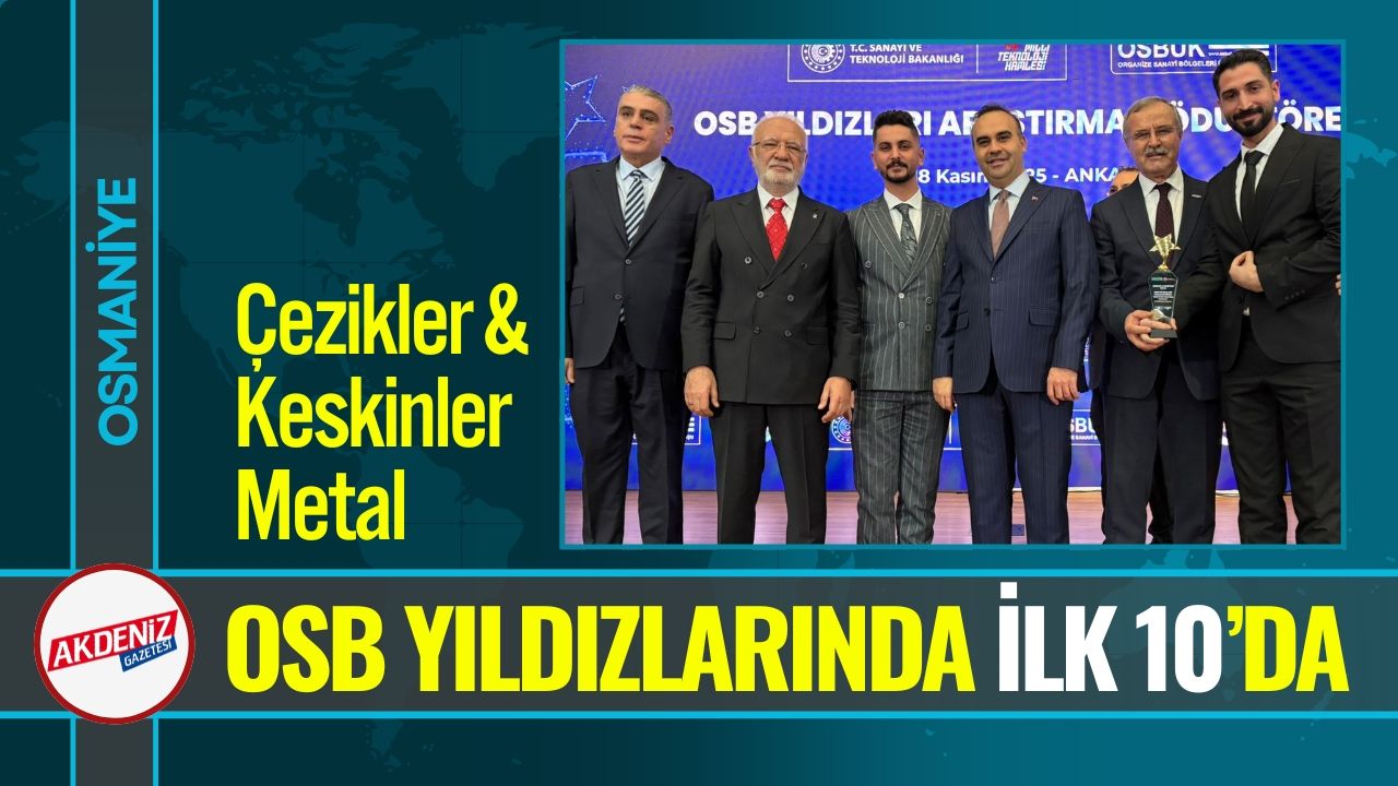 Sanayi ve Teknoloji Bakanı Mehmet Fatih Kacır’ın katılımıyla düzenlenen törende, Osmaniye’nin güçlü sanayi temsilcilerinden Çezikler & Keskinler Metal San. Tic. Ltd. Şti., kendi kategorisinde Türkiye genelinde ilk 10 firma arasına girmeyi başararak büyük bir ödüle layık görüldü.