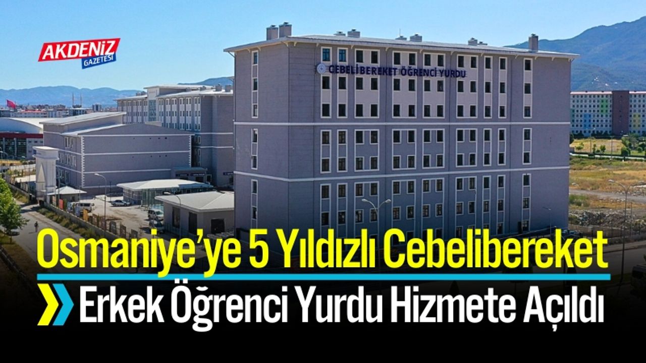 Osmaniye’deki üniversite öğrencileri için konforlu ve modern bir barınma imkanı sunan Cebelibereket Erkek Öğrenci Yurdu hizmete açıldı. Toplam 1.684 yatak kapasitesine sahip yurt, öğrencilerin tüm ihtiyaçlarını karşılayacak şekilde donatıldı.