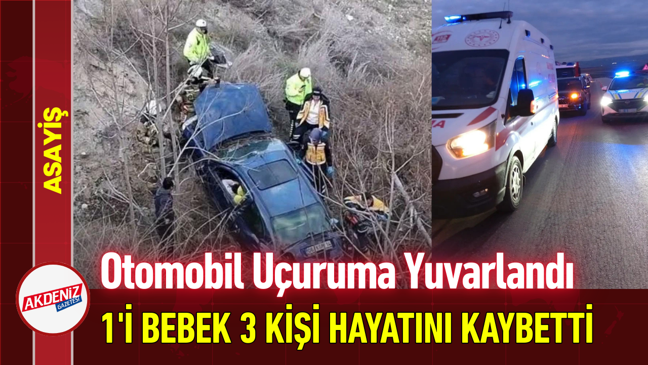 Ankara'nın Beypazarı ilçesinde kontrolden çıkan otomobilin 10 metre yükseklikten yuvarlanması sonucu meydana gelen kazada 1’i bebek 3 kişi hayatını kaybetti.