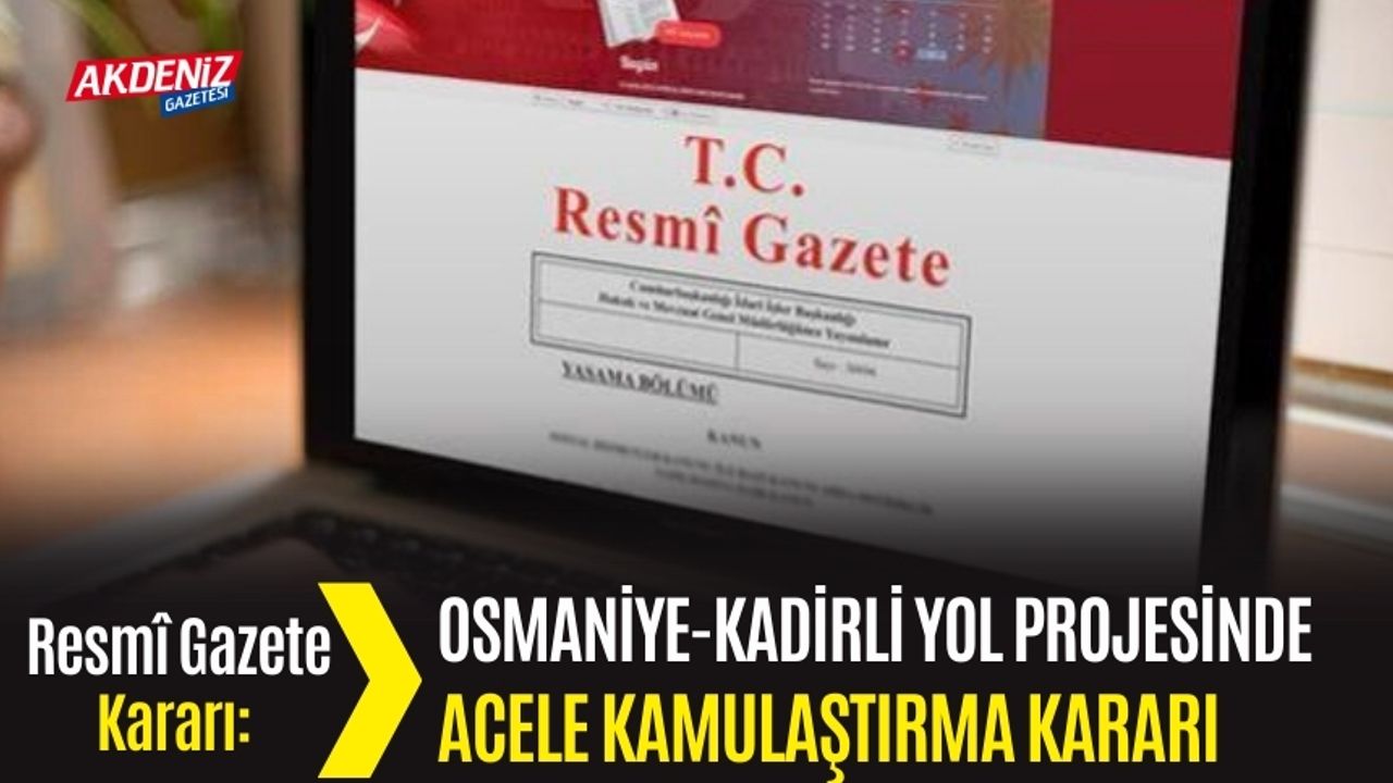 Resmî Gazete'de yayımlanan karara göre, Osmaniye ve Kadirli arasındaki il yol ve bağlantı yolları projesi kapsamında yer alan güzergâhlarda acele kamulaştırma yapılacak.