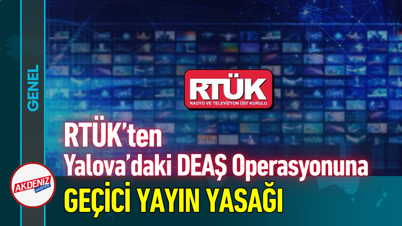 Radyo ve Televizyon Üst Kurulu (RTÜK), terör örgütü DEAŞ'a yönelik Yalova'daki operasyon hakkında geçici yayın yasağı getirildiğini açıkladı.