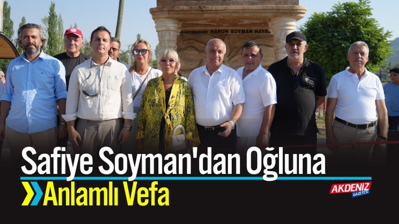 25 yıl MS hastalığıyla mücadele eden Harun Akaröz, geçtiğimiz yıl yaz aylarını geçirdiği Yeşilbaşköy'de 52 yaşında hayatını kaybetmiş, cenazesi Muğla'nın Bodrum ilçesine bağlı Gündoğan Mahallesi'nde toprağa verilmişti. Ölüm yıl dönümünde oğlunun anısını yaşatmak isteyen Safiye Soyman, Yeşilbaşköy'de "Harun Soyman" adına yaptırdığı çeşmeyi hizmete açtı.