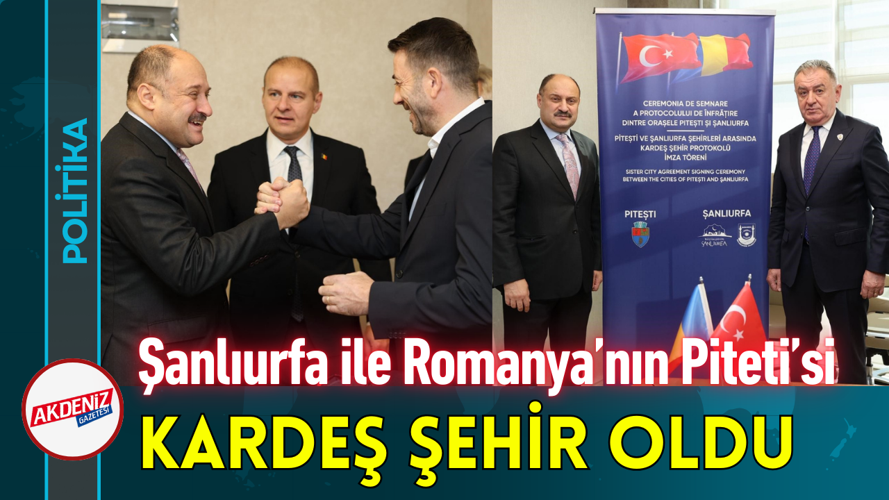 Şanlıurfa Büyükşehir Belediyesi ile Romanya’nın Piteti Belediyesi arasında "Kardeş Şehir Protokolü" imzalandı. Protokol, Şanlıurfa Büyükşehir Belediye Başkanı Mehmet Kasım Gülpınar ile Piteti Belediye Başkanı Cristian Gentea’nın imzalamasıyla, Şanlıurfa’da düzenlenen resmi törenle hayata geçirildi.