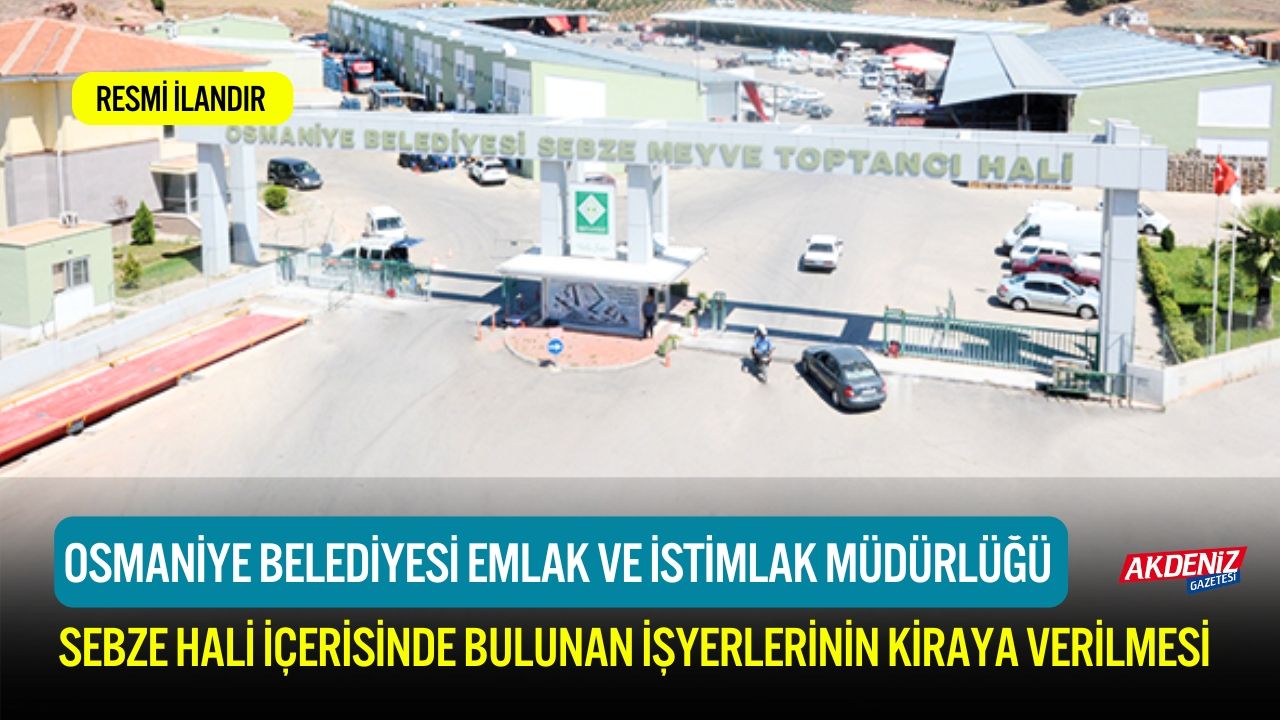 1-Mülkiyeti Belediyemize ait Sebze Hali İçerisinde bulunan 2, 3, 4 nolu işyerlerinin muhammen bedel ve geçici teminat tutarı ve ihale saati belirtilen yerler 2886 sayılı Devlet İhale Kanununun 45. maddesi gereğince Açık İhale Usulüyle 30.12.2025 Salı günü saat 14:00 da Osmaniye Belediyesi Encümen Toplantı Salonunda ihale yoluyla 3 yıllığına kiraya verilecektir.