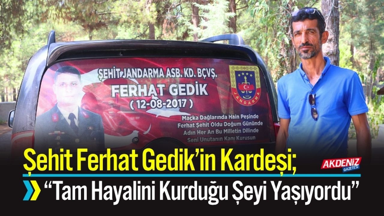 Ferhat Gedik’in resim yapmayı sevdiğini ve dağlara olan ilgisini anlatan Arif Gedik, “Küçükken hep ‘Çok başarılı olacağım’ derdi. Çok çalıştı, azmetti, kazandı ve birçok yerde görev yaptı. Son dönemlerinde istihbaratta çalışıyordu, tam hayalini kurduğu şeyi yaşıyordu ama şehadet şerbetini içti” diye konuştu. Ağabeyinin Eren Bülbül’ü korumak için üzerine kapandığını vurgulayan Gedik, “Abim 41. doğum gününde 41 kurşunla şehit oldu” sözleriyle duygularını dile getirdi.