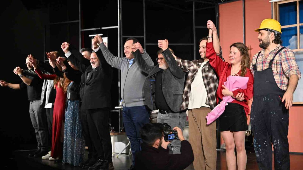 Oyun sonunda sahneye çıkan Manisa Büyükşehir Belediye Başkanı Besim Dutlulu, oyuncuları tebrik ederek,
