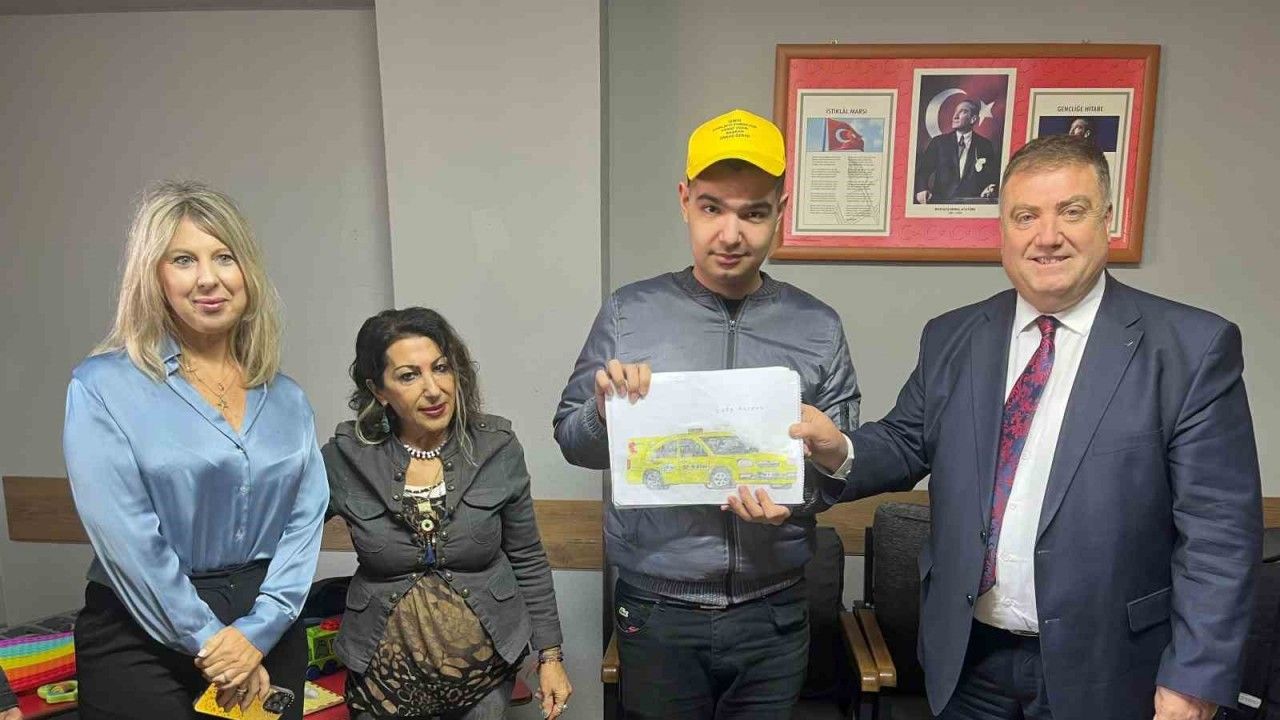 Bayraklı’daki özel eğitim merkezinde eğitim gören 19 yaşındaki Halil Aziz Kama, taksilere duyduğu derin ilgiyle dikkat çekiyor. Halil, bu özel ilgisini sanata dönüştürerek, boş zamanlarında çizdiği, hatta 1995-96 model nostaljik taksileri hayal ederek resmettiği eserleri, İzmir Şoförler ve Otomobilciler Esnaf Odası Başkanı Erkan Özkan’a gönderdi. Bu anlamlı hediye, 3 Aralık Dünya Engelliler Günü vesilesiyle Odaya ulaştı.
