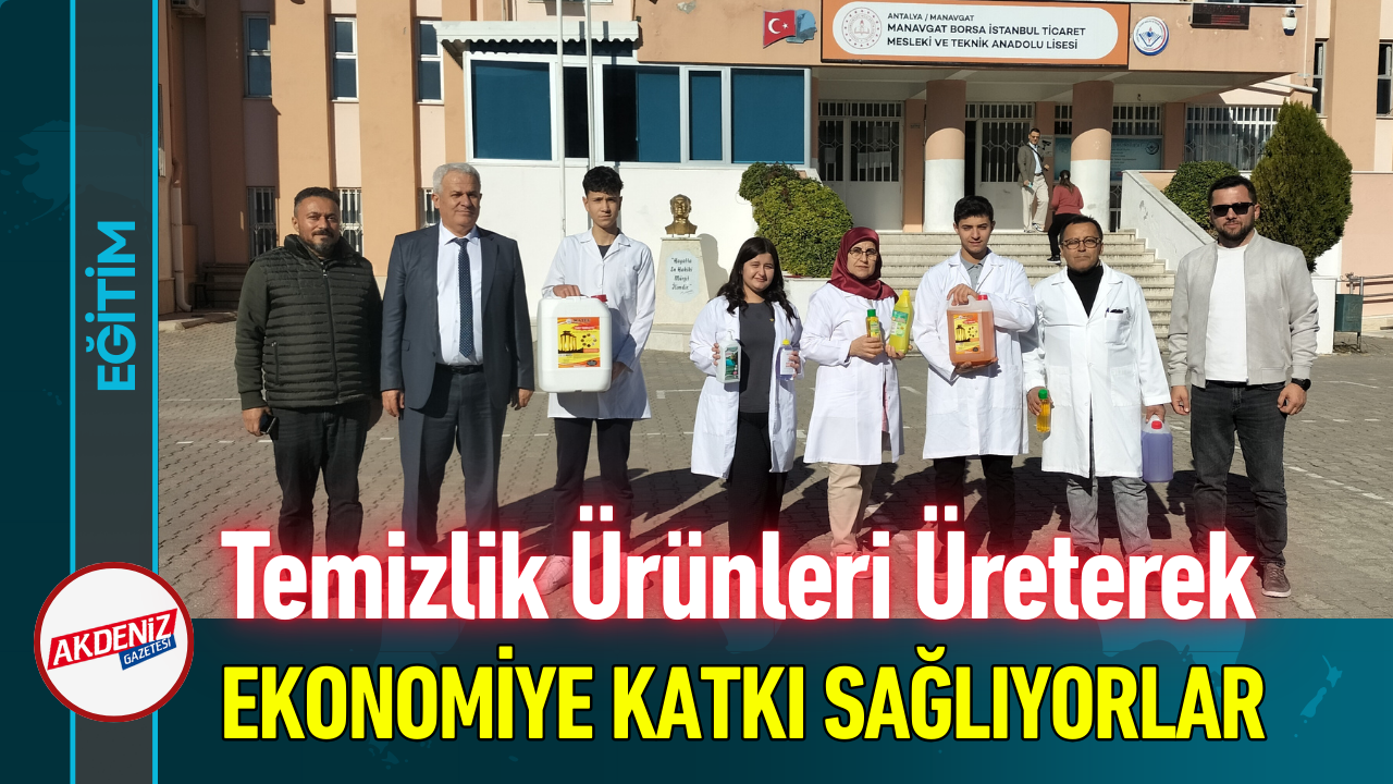 Antalya'nın Manavgat ilçesinde bulunan Borsa İstanbul Ticaret Mesleki ve Teknik Anadolu Lisesi öğrencileri, temizlik ve hijyen ürünleri üreterek hem mesleki deneyim kazanıyor hem de ekonomiye katkı sağlıyor.