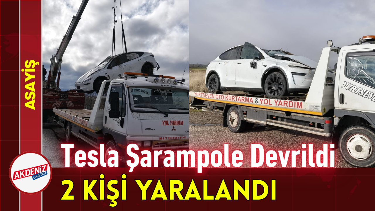 Afyonkarahisar'da Tesla marka elektrikli otomobilin kontrolden çıkarak şarampole devrilmesi sonucu yaşanan kazada 2 kişi yaralandı.